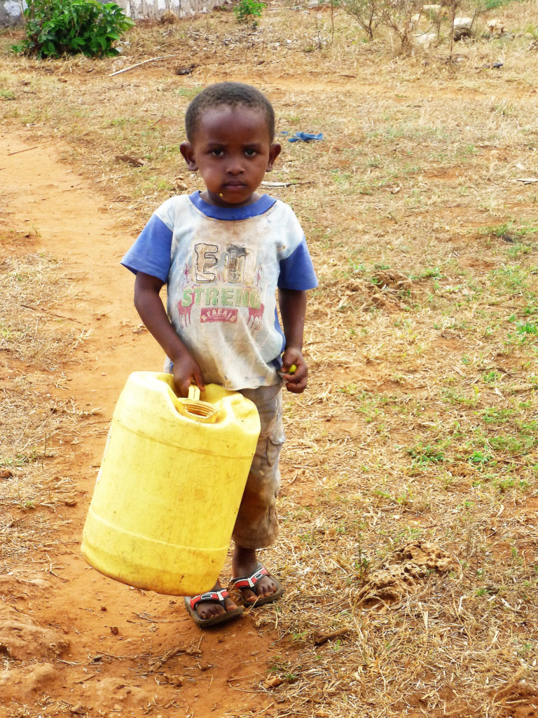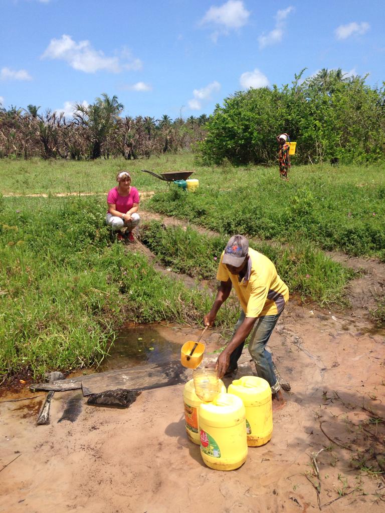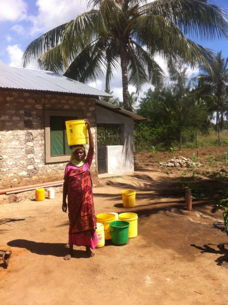 Kassim organisiert täglich die Wasserausgabe. Schon ab 6 Uhr klopfen die Nachbarn und Dorfbewohner am Gartentor und freuen sich auf das frische Wasser aus den Brunnen.